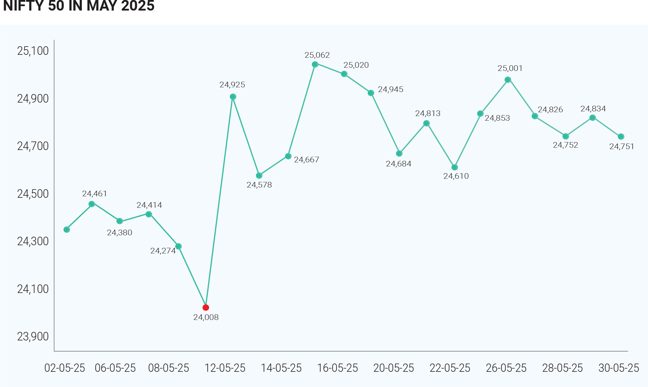 May 2025 was a month of moderation, resilience, and strategic positioning for Indian equities. After a strong rally in March and April, the NIFTY 50 and Sensex continued to post gains, but at a slower pace, amid a complex backdrop of geopolitical tensions, global trade