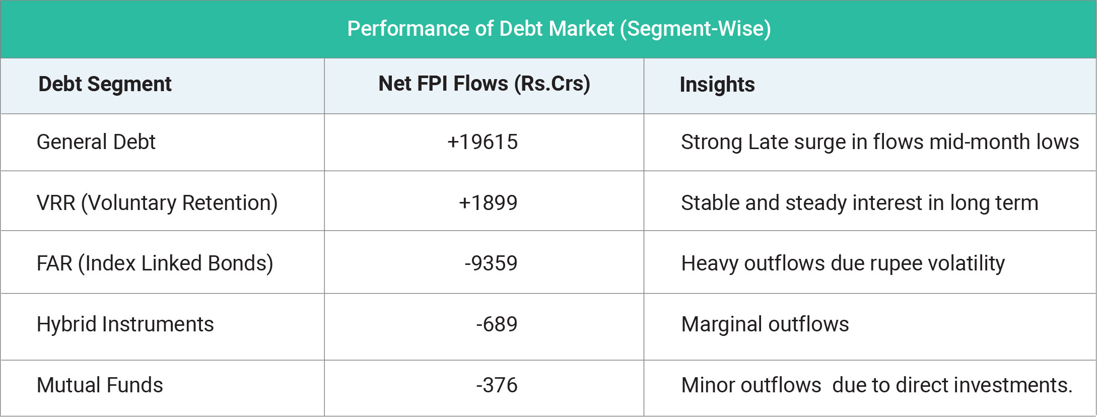 May 2025 was a dynamic and eventful month for India’s debt markets, characterized by robust foreign inflows, active central bank support, and sharp divergences across debt segments. Overall sentiment remained positive, driven by a surge in end-of-month foreign portfolio investment (FPI), easing inflation, and a liquidity-friendly monetary policy environment. Total FPI inflows into Indian debt stood at ₹12,000 crore in May, driven by a dramatic ₹27,115 crore purchase in the General Debt segment on May 30. This late-month spike offset earlier outflows and reaffirmed foreign investor confidence in India’s fixed income market. However, this optimism wasn’t uniform across all segments. The Fully Accessible Route (FAR), which includes bonds eligible for global index inclusion, witnessed record foreign selling, mainly due to profit-taking, rupee volatility, and narrowing yield differentials with U.S. Treasuries